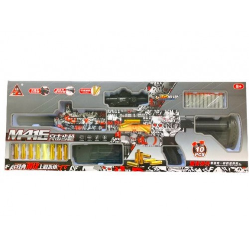 У наборі: автомат іграшковий, приціл, м'які кулі 10 шт., Гільзи 8шт., лазерний приціл, магазин