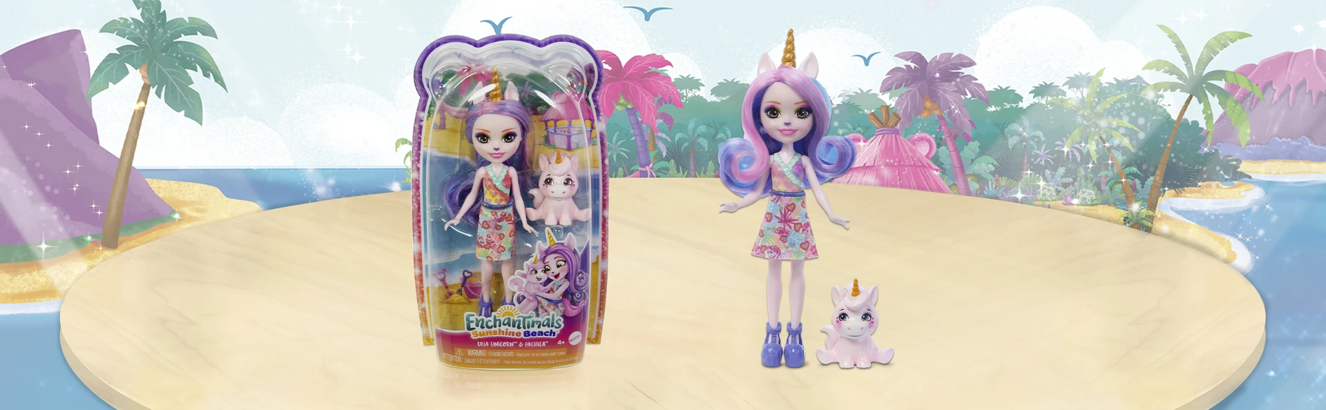 Єдиноріг Улія (15 см) одягнена в яскравий одяг з веселими малюнками, а також хутряний комір і жовте взуття, що чудово передає її творчий характер. Малюкам сподобається її довге фіолетове волосся та чарівні деталі образу.