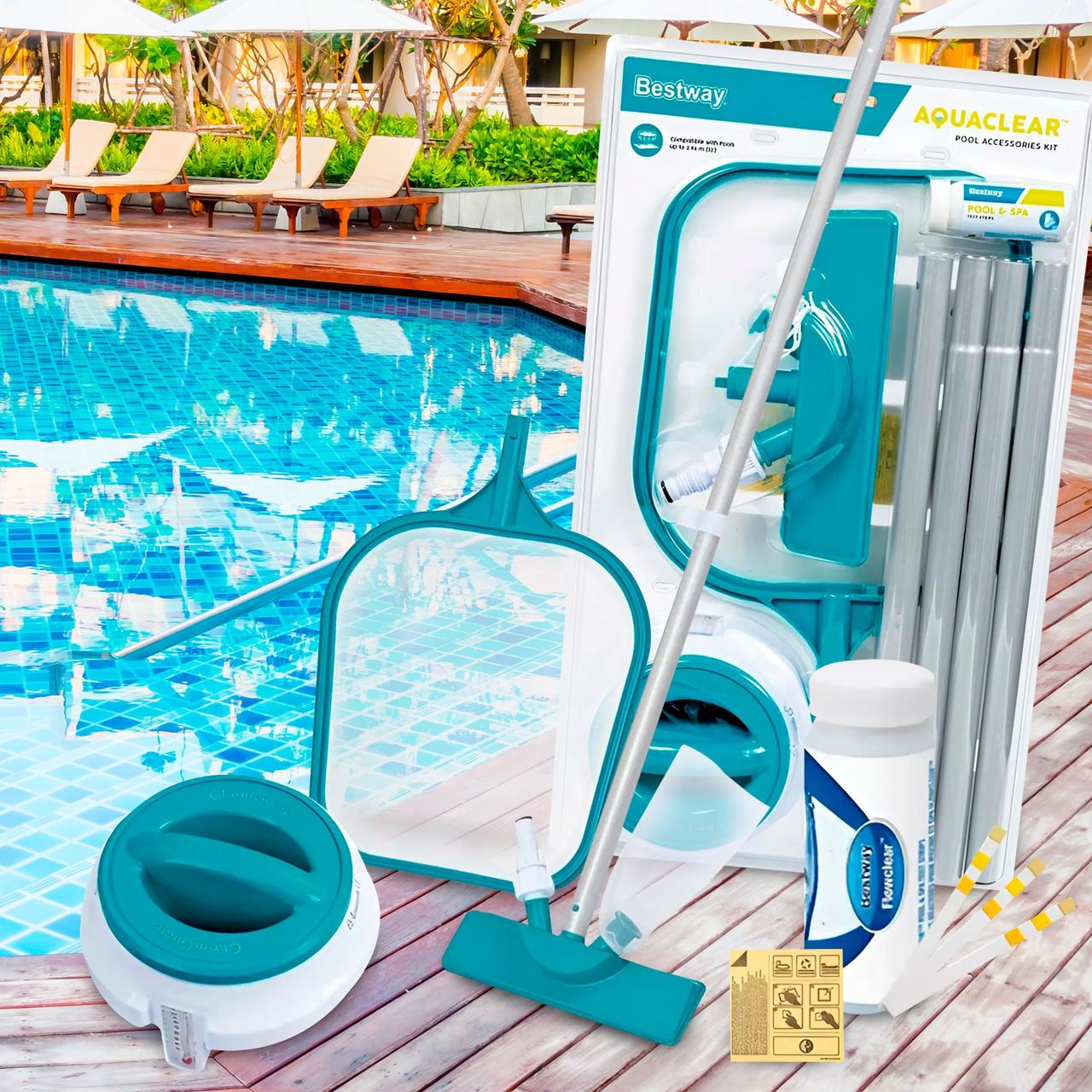 Універсальний набір Bestway 58794 розроблений для ефективного догляду за каркасними та надувними басейнами. У комплект входять всі необхідні інструменти для очищення поверхні та дна від забруднень, а також контролю стану води. Завдяки цьому набору ви зможете підтримувати чистоту та прозорість води з мінімальними зусиллями.